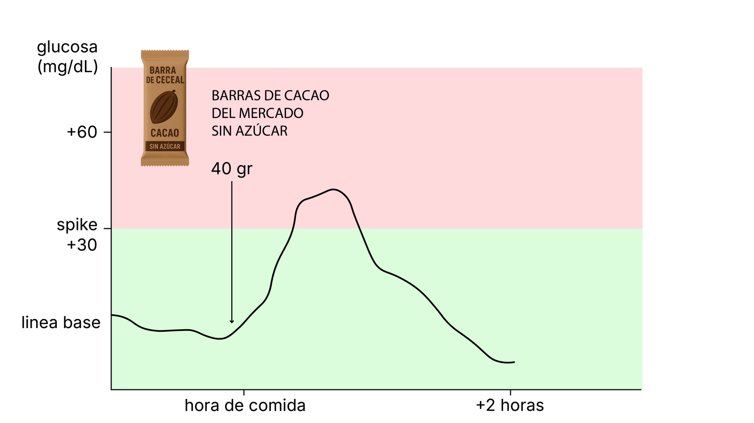 Curva de glucosa barra de cacao "saludable" sin azúcar del mercado.